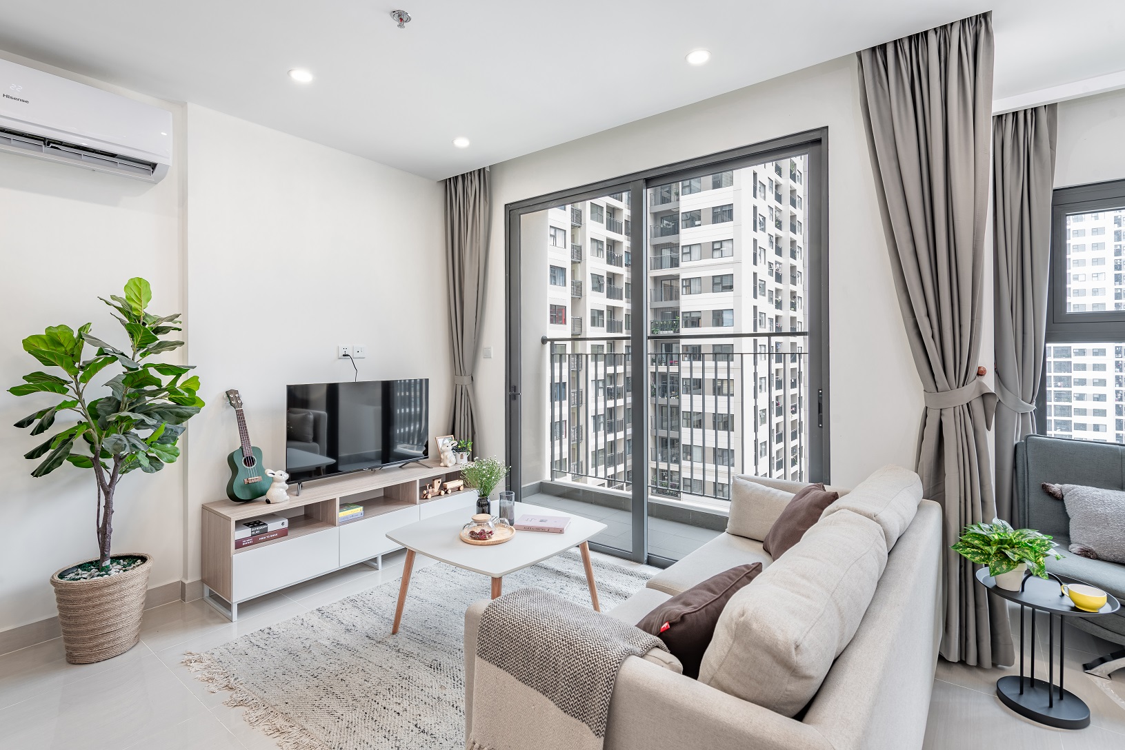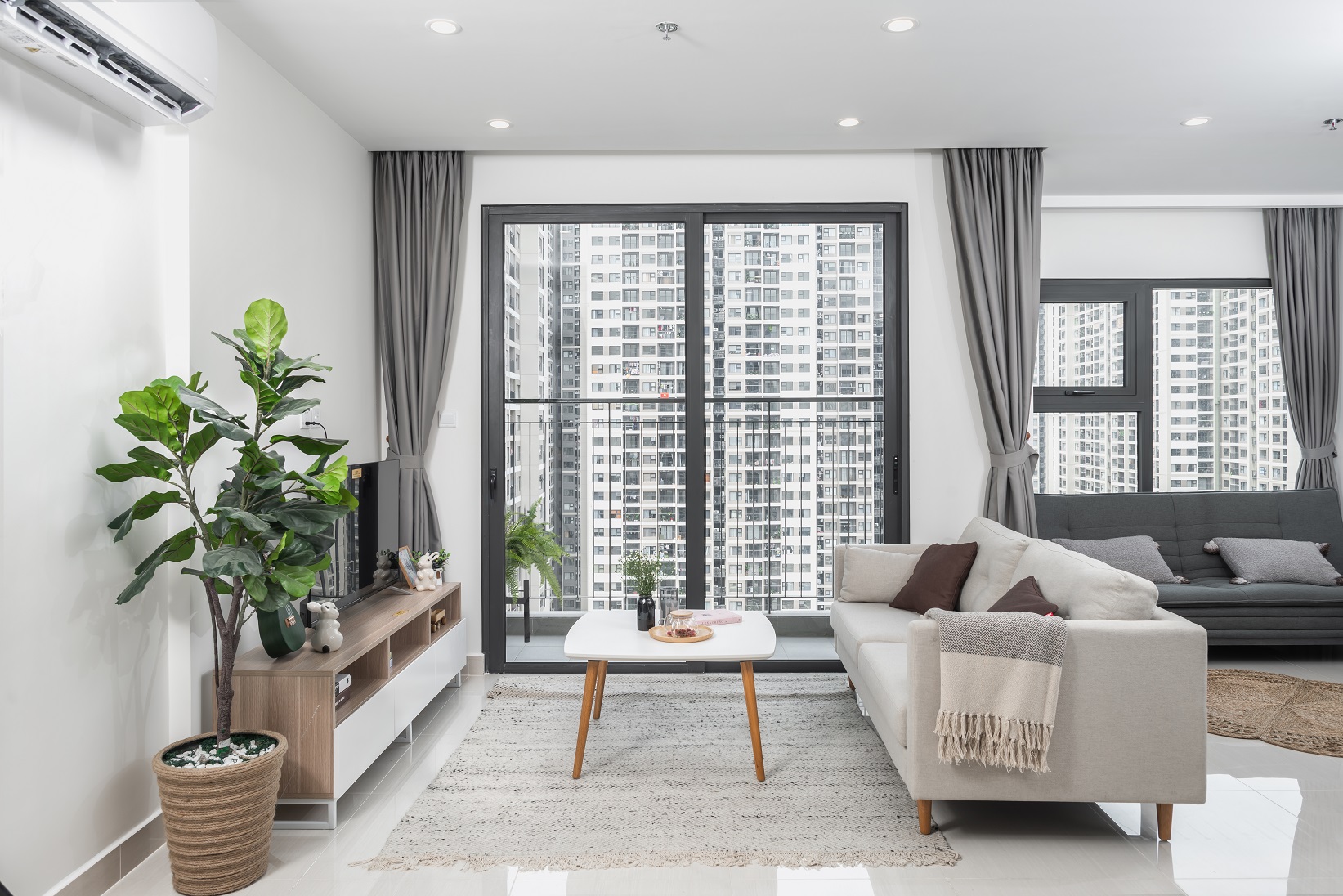 Đây là dòng căn hộ được thiết kế tối ưu diện tích sử dụng với phòng khách và phòng bếp mở thông nhau, 2 phòng ngủ, 1 nhà vệ sinh. Bên cạnh đó, căn hộ có đến 2 logia để giúp cư dân thuận tiện trong các công việc nhà hàng ngày như giặt giũ, phơi đồ… Ngoài ra, đây cũng là không gian mà cư dân được thoải mái tiếp xúc với ánh nắng tự nhiên và gió trời, mang lại cảm giác khoan khoái, dễ chịu.